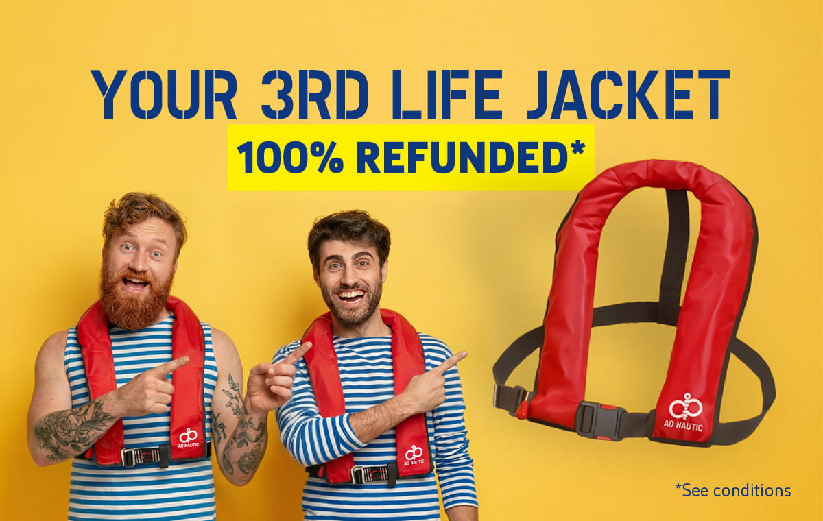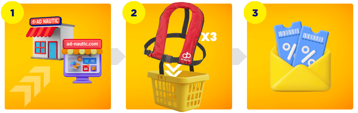 * Offer reserved for customers with an AD NAUTIC account. Vouchers are not generated when purchasing promotional life jackets or when purchasing a combination of both items; nor for orders placed in “guest mode” on the website.